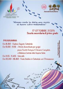 In occasione del Giubileo del Mondo Educativo, Grande Evento previsto per l’Anno Giubilare in corso, l’Arcidiocesi di Palermo desidera dare eco locale al tema della “Speranza educativa” coinvolgendo le scuole e il mondo dell’educazione, secondo un programma esperienziale che ha lo scopo di far vivere il tema giubilare attraverso uno sguardo di meraviglia verso l’ordine armonico dell’universo che richiama a propositi di pace: