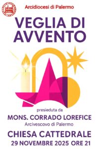 La Chiesa Cattedrale di Palermo accoglierà sabato 29 novembre alle ore 21.00 la solenne Veglia di Avvento presieduta dall’Arcivescovo Mons. Corrado Lorefice.