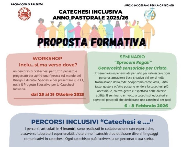 PROGRAMMA COMPLETO con luoghi, date e orari su: https://ufficiocatechistico.chiesadipalermo.it/catechesi-inclusiva/